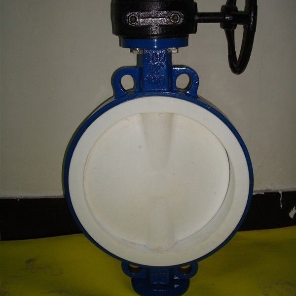 衬氟蝶阀是用阀杆一起转动的蝶板作启闭件,用以实现阀门的开启,关闭与调节。衬氟蝶阀是在过流部件、阀体、蝶板、阀杆上采用衬里技术衬里较厚的高分子材料,防腐蚀性能优良,可适用于任何浓度的酸、碱、盐及氧化剂、还原剂、有机溶剂等介质,衬氟蝶阀是化工、石油、医药、食品、钢铁冶炼、造纸、水电等系统的气体、液体、半流体的管路和容器上作截流和调节设备使用的理想产品,并可取代闸阀、截止阀和其它类型的切断、调节阀门。