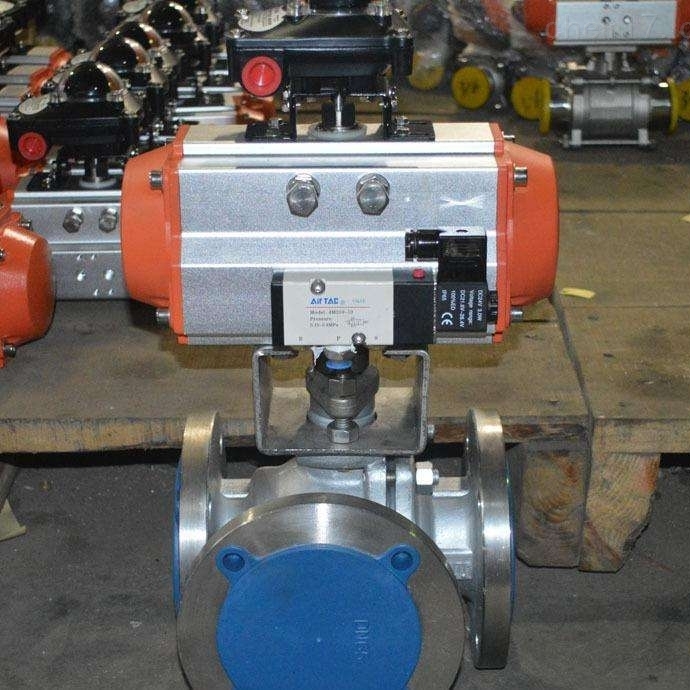 Q6(45/44)F46气动三通衬氟球阀的标准球芯有L型三通双口孔道和T型三口孔道。改变球芯与管道的相对角度就可对三条支管流体实现不同的组合控制。T型孔道可使三条正交的管道互相连通,也可使其中两条管道连通而切断另一条管道,L型孔道只能连通或切换互相垂直的两条管道。即T型孔道起分流、合流作用,L型孔道起分配作用。
