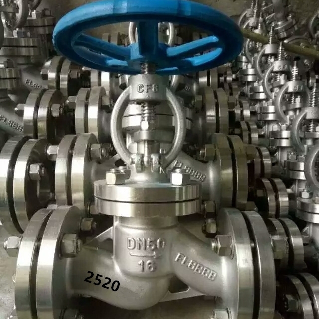 2520双相钢截止阀:又叫双相钢高温截止阀,整体2520不锈钢制作耐高温性能好的很,手轮开关,法兰连接直通式截止阀,密封面为本体材料,压力PN10~PN25,通经为DN15-DN250(国标)。具有良好耐氧化、耐腐蚀、耐酸碱、耐高温性能,耐高温钢管于制造电热炉管等场合