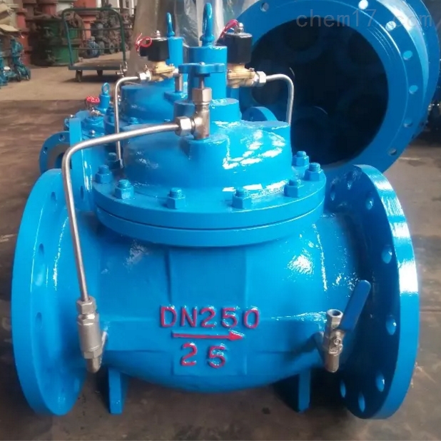 由主阀、压差控制导阀、针阀、球阀、微形过滤器和压力表组成水力控制接管系统。通过专门设计的导阀控制室,对压力变化信号进行比较,输出主阀开度信号,控制主阀开度,从而控制主阀的进出口压差在设定值上。其工作原理是,当主阀进出口间压差变化时,接管A与接管B间压差发生变化,此变导阀的开度。压差大时导阀开度大,控制室通过C管的下泄水量增大,主阀控制室压力下降,主阀开度增大,主阀进出口间压差变小。反之,若主阀进出口间压差变小,则导阀开度变小,主阀控制室压力上升,推动主阀开度减小而使主阀压差增大。这种负反馈作用使主阀进出口间压差稳定在社顶值上。设定针阀开度和导阀弹簧压力可设定主阀进出口间压差。高泉本产品利用水力自力控制,不需要其它装置和能源,保养简便,广泛用于高层建筑、生活区等供水管网系统及城市供水工程.