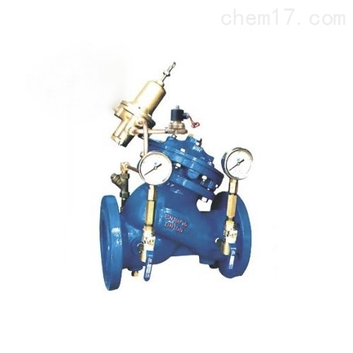 采用电动驱动的一种隔膜式水力控制阀门阀门上配备电磁阀,应用在各类自来水厂、钢厂、泵房及水系统管道当中。可以根 据信号或者手动进行操作。其有着快速控制反应优点,并且在关闭过程当中可以根据实际情况调节,在运行时阀门平稳不会产生压力波动影响管道安全,此种型号产 品同时兼有减压、稳压、止回三种功能。同时还有使用寿命长、易维护保养。