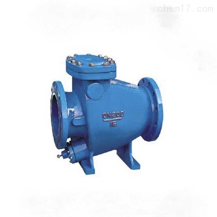 3.HH44X微阻缓闭止回阀:销轴(或者说阀杆)外装一个重锤,由于重锤的自由落体运动,关闭时增加了密封压紧外力.有效的保证了密封.