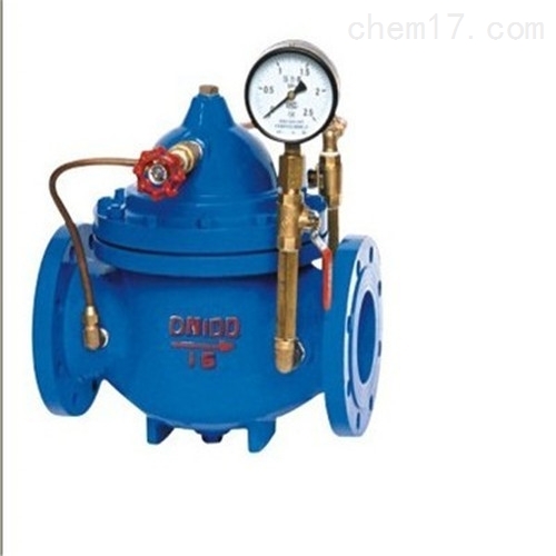 当阀门从进口端给水时,水通过微型过滤器、针阀、单向阀进入主阀控制室,再经过球阀排水至下游。因为针阀开度小于球阀开度,即主阀控制室的排水速度大于进水速度,因此控制室压力降低,作用于主阀盘下端的进口压力打开主阀向下游供水。